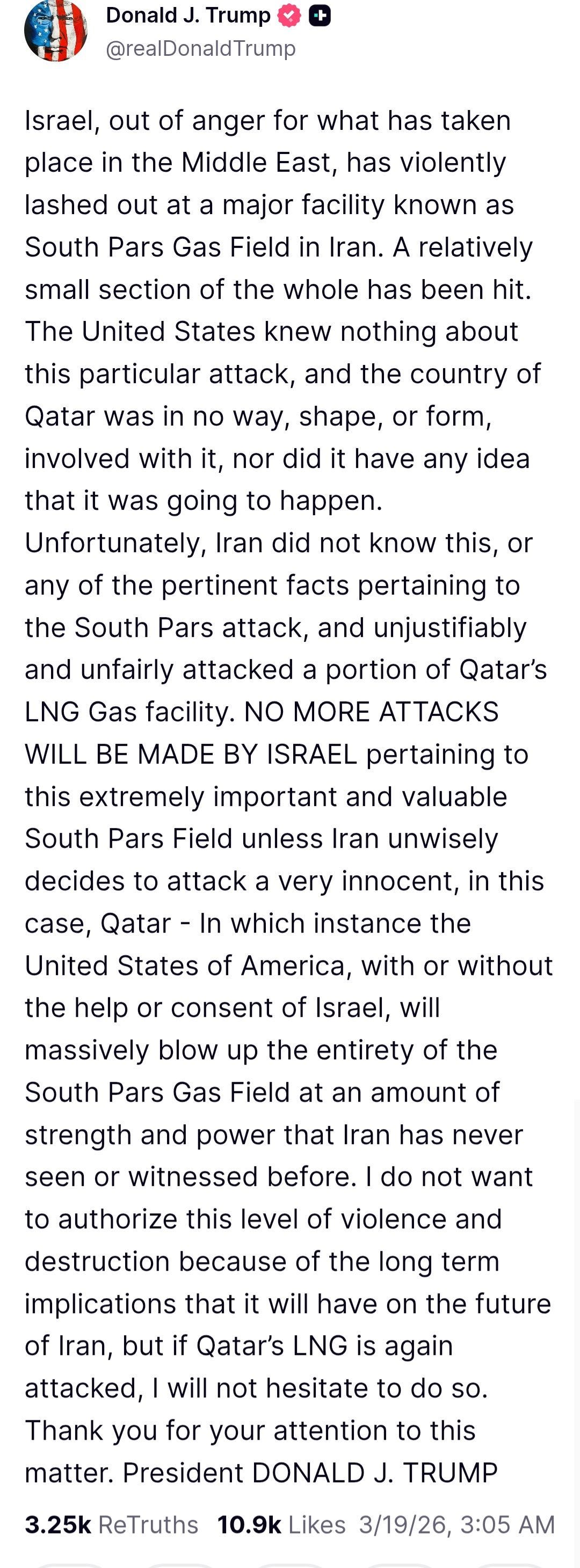 Notably, IQ47 is declaring the Israeli attack with ‘out of anger for what has taken place in the Middle East’ - as if it was not him and the Israelis launching a joint aggression on Iran. And he’s babbling about ‘relatively small section of the whole’ being hit - where the NYT reports the destruction/damage of (at least) 12% of the installations, and this causing a major energy crisis in Iran alone.