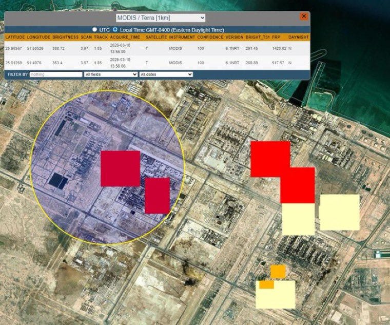 Shell Pearl GTL (gas-to-liquids) 6 Ras Laffan condensate refinery in Doha (that’s something like 1.5% of global GTL output offline, with one blow);